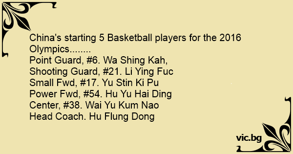 China's starting 5 Basketball players for the 2016 Olympics........
