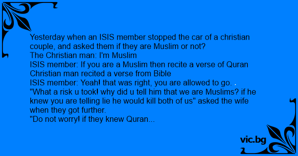 Yesterday when an ISIS member stopped the car of a christian couple, and asked them if they are Muslim or not?