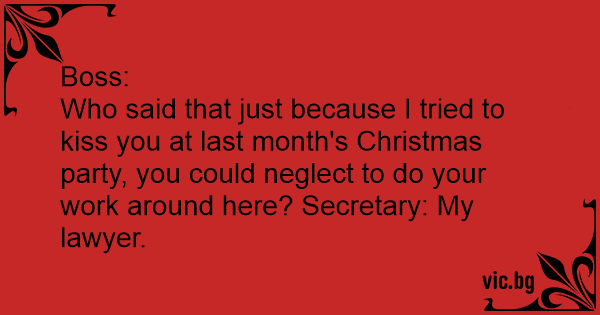 Who said that just because I tried to kiss you at last month's Christmas party, you could neglect to do your work around here? Secretary: My lawyer.