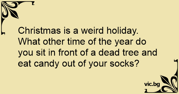 Christmas is a weird holiday. What other time of the year do you sit in front of a dead tree and eat candy out of your socks?