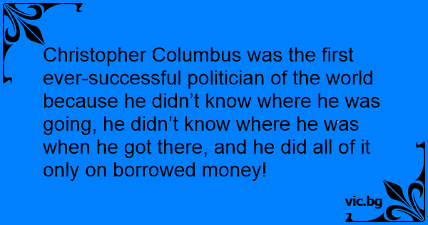 Christopher Columbus was the first ever-successful politician of the world because he didn’t know where he was going, he didn’t know where he was when he got there, and he did all of it only on borrowed money!