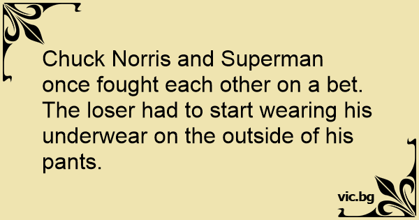 Chuck Norris and Superman once fought each other on a bet. The loser had to start wearing his underwear on the outside of his pants.
