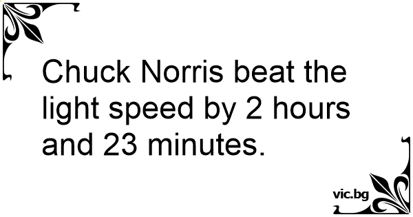 Chuck Norris beat the light speed by 2 hours and 23 minutes.