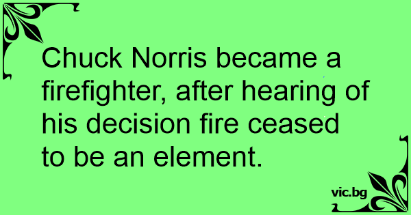 Chuck Norris became a firefighter, after hearing of his decision fire ceased to be an element.