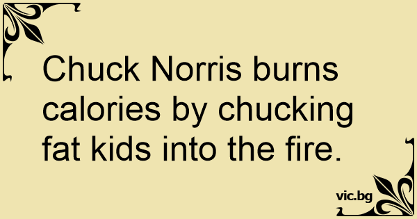 Chuck Norris burns calories by chucking fат kids into the fire.