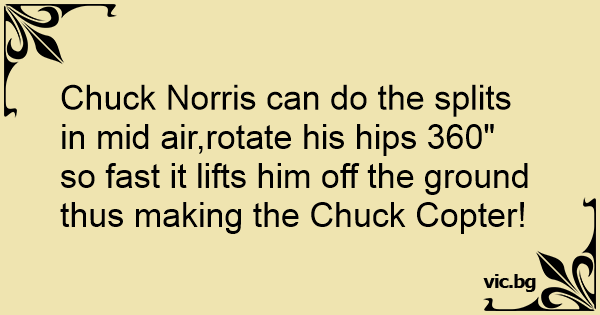 Chuck Norris can do the splits in mid air,rotate his hips 360" so fast it lifts him off the ground thus making the Chuck Copter!