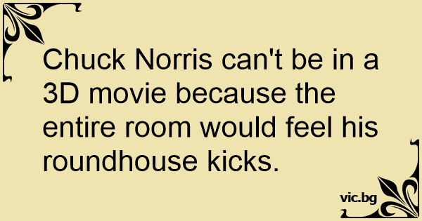 Chuck Norris can't be in a 3D movie because the entire room would feel his roundhouse kicks.