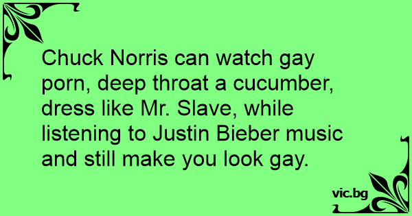 Chuck Norris can watch gаy роrn, deep throat a cucumber, dress like Mr. Slаvе, while listening to Justin Bieber music and still make you look gаy.
