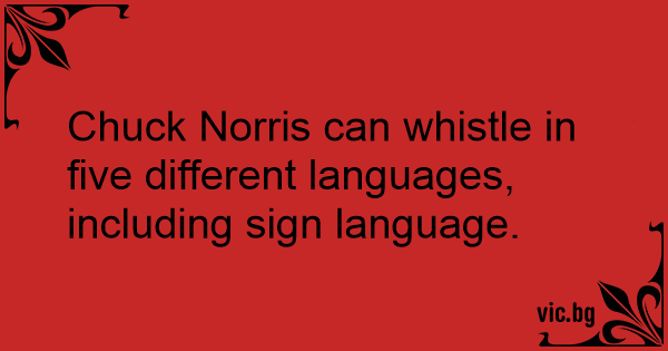 Chuck Norris can whistle in five different languages, including sign language.
