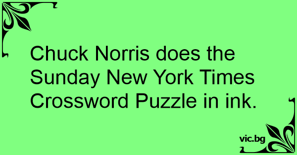 Chuck Norris does the Sunday New York Times Crossword Puzzle in ink.