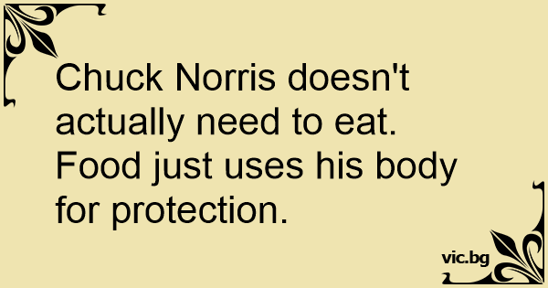 Chuck Norris doesn't actually need to eat. Food just uses his body for protection.