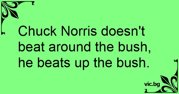 Chuck Norris doesn't beat around the bush, he beats up the bush.