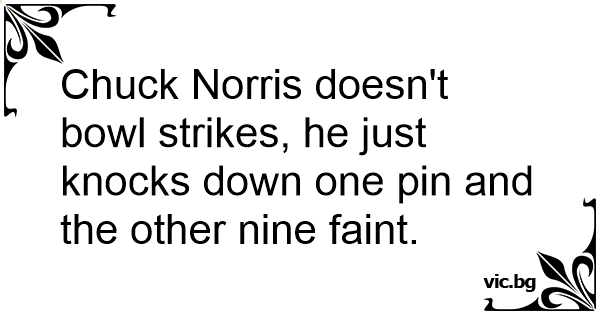 Chuck Norris doesn't bowl strikes, he just knocks down one pin and the other nine faint.