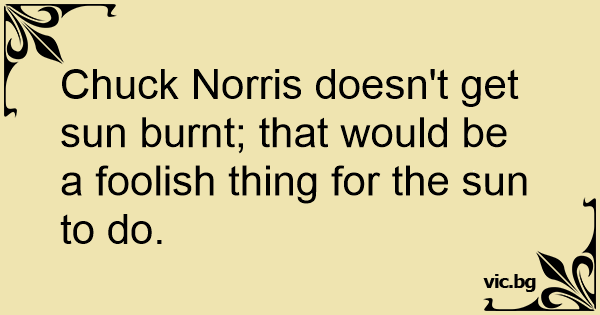 Chuck Norris doesn't get sun burnt; that would be a foolish thing for the sun to do.