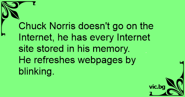 Chuck Norris doesn't go on the Internet, he has every Internet site stored in his memory.