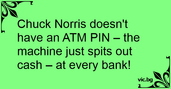 Chuck Norris doesn't have an ATM PIN – the machine just spits out cash – at every bank!