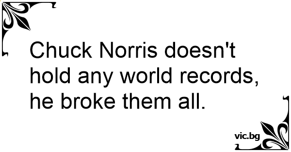 Chuck Norris doesn't hold any world records, he broke them all.