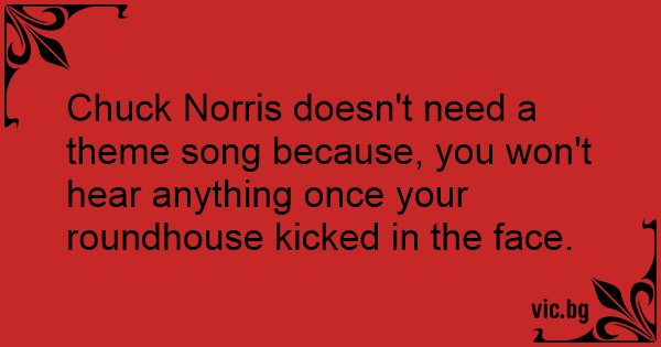Chuck Norris doesn't need a theme song because, you won't hear anything once your roundhouse kicked in the face.