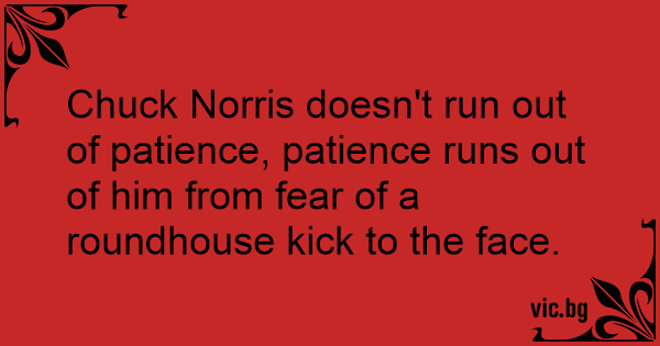 Chuck Norris doesn't run out of patience, patience runs out of him from fear of a roundhouse kick to the face.