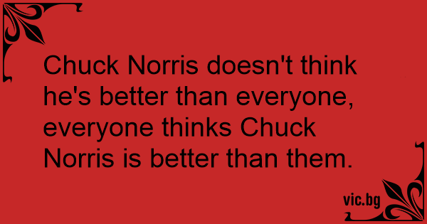 Chuck Norris doesn't think he's better than everyone, everyone thinks Chuck Norris is better than them.
