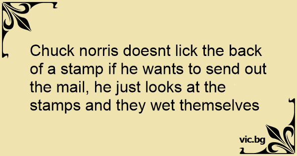 Chuck norris doesnt liск the back of a stamp if he wants to send out the mail, he just looks at the stamps and they wet themselves
