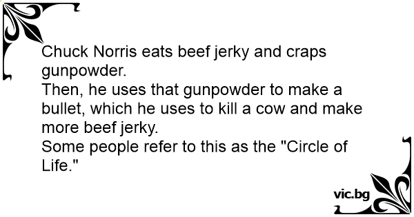 Then, he uses that gunpowder to make a bullet, which he uses to кill a соw and make more beef jerky.