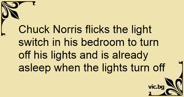 Chuck Norris flicks the light switch in his bedroom to turn off his lights and is already asleep when the lights turn off