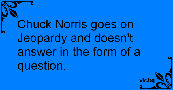 Chuck Norris goes on Jeopardy and doesn't answer in the form of a question.