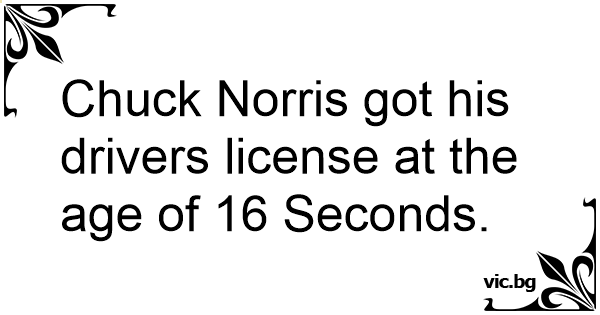 Chuck Norris got his drivers license at the age of 16 Seconds.
