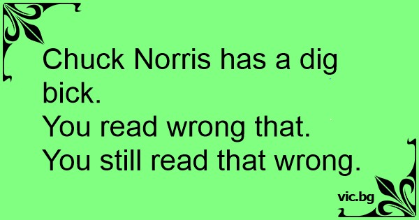 Chuck Norris has a dig bick.<br />You read wrong that.<br />You still read that wrong.