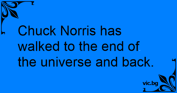 Chuck Norris has walked to the end of the universe and back.