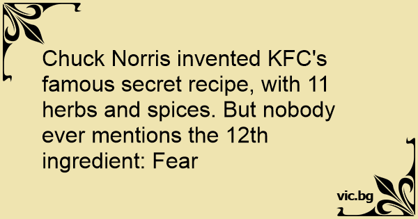 Chuck Norris invented KFC's famous secret recipe, with 11 herbs and spices. But nobody ever mentions the 12th ingredient: Fear