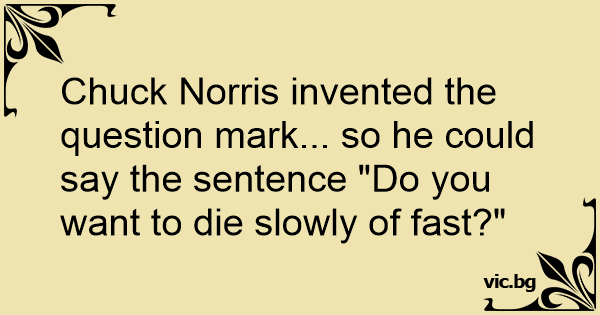 Chuck Norris invented the question mark... so he could say the sentence "Do you want to die slowly of fast?"