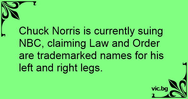 Chuck Norris is currently suing NBC, claiming Law and Order are trademarked names for his left and right legs.