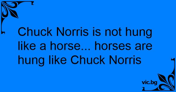 Chuck Norris is not hung like a horse... horses are hung like Chuck Norris