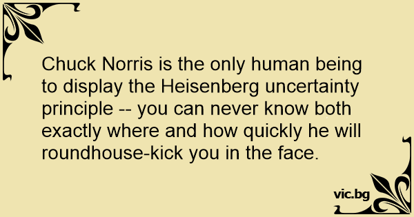 Chuck Norris is the only human being to display the Heisenberg uncertainty principle -- you can never know both exactly where and how quickly he will roundhouse-kick you in the face.