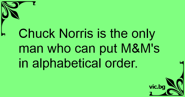 Chuck Norris is the only man who can put M&M's in alphabetical order.
