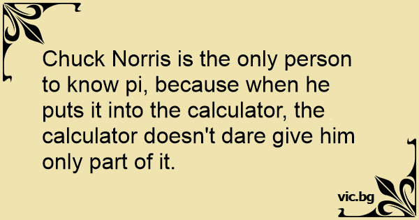 Chuck Norris is the only person to know pi, because when he puts it into the calculator, the calculator doesn't dare give him only part of it.
