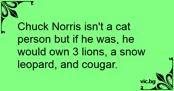 Chuck Norris isn't a cat person but if he was, he would own 3 lions, a snow leopard, and cougar.