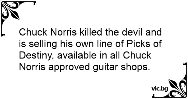 Chuck Norris killed the devil and is selling his own line of Picks of Destiny, available in all Chuck Norris approved guitar shops.
