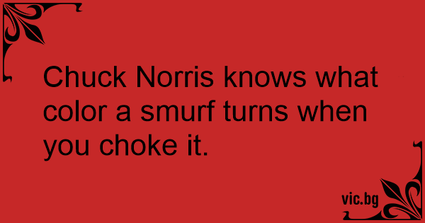 Chuck Norris knows what color a smurf turns when you choke it.
