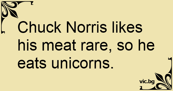 Chuck Norris likes his meat rare, so he eats unicorns.