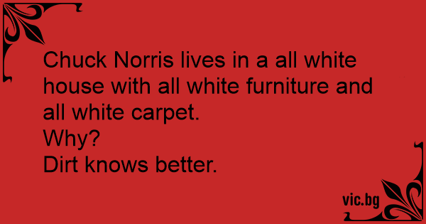 Chuck Norris lives in a all white house with all white furniture and all white carpet.