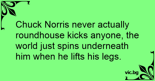 Chuck Norris never actually roundhouse kicks anyone, the world just spins underneath him when he lifts his legs.