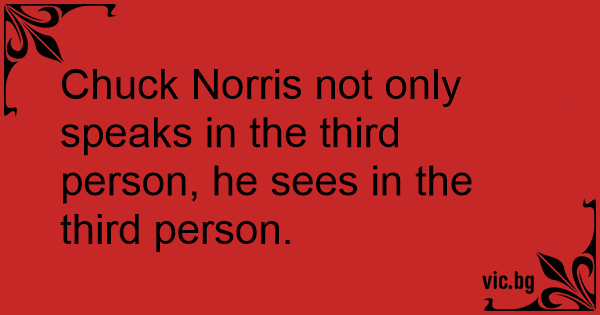 Chuck Norris not only speaks in the third person, he sees in the third person.