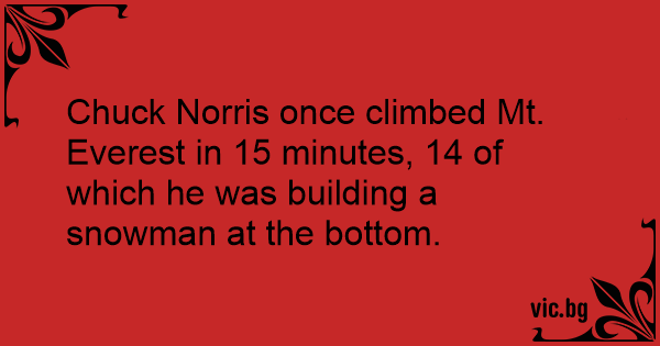 Chuck Norris once climbed Mt. Everest in 15 minutes, 14 of which he was building a snowman at the bottom.