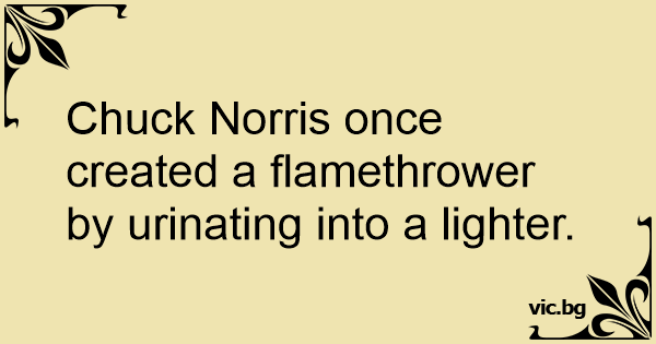 Chuck Norris once created a flamethrower by urinating into a lighter.