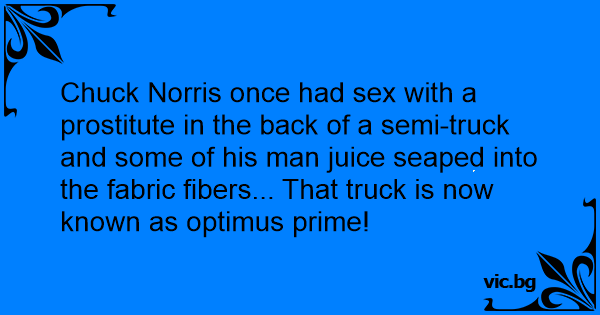Chuck Norris once had sеx with a рrоsтiтuте in the back of a semi-truck and some of his man juice seaped into the fabric fibers... That truck is now known as optimus prime!