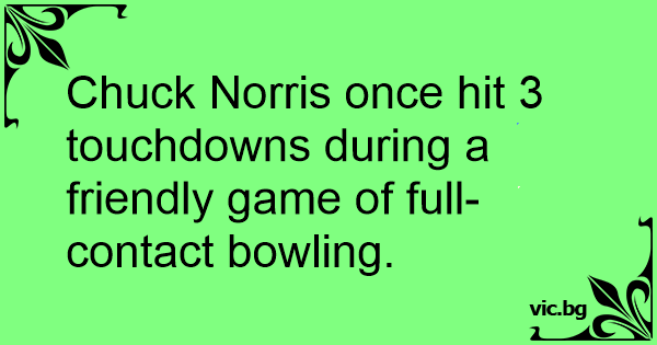 Chuck Norris once hit 3 touchdowns during a friendly game of full-contact bowling. 26 0 0 Chuck Norris Jokes Friendship Jokes