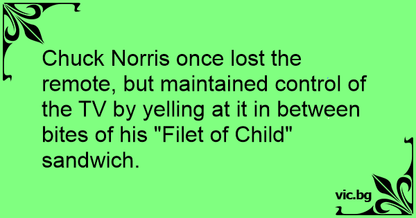 Chuck Norris once lost the remote, but maintained control of the TV by yelling at it in between bites of his "Filet of Child" sandwich.